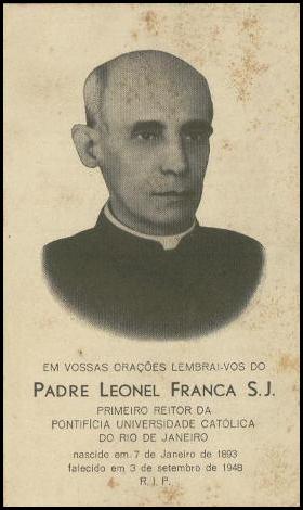 Fundador e primeiro reitor da Pontifícia Universidade Católica do Rio de Janeiro, Padre Leonel Edgard da Silveira Franca S.J. nasceu em 06 de janeiro de 1893, em São Gabriel, Rio Grande do Sul, de família baiana. Homem de profunda influência cultural e religiosa no Brasil, Padre Leonel Franca dedicou cerca de seus últimos dez anos à fundação e consolidação da primeira universidade particular do país. Conferencista de cultura profunda e vasta, suas palestras representavam acontecimento intelectual de primeiro plano. Nessas ocasiões levava a auditórios lotados figuras ilustres como Epitácio Pessoa, Pandiá Calógeras, Jackson de Figueiredo, Alceu Amoroso Lima, Sobral Pinto e Murilo Mendes.